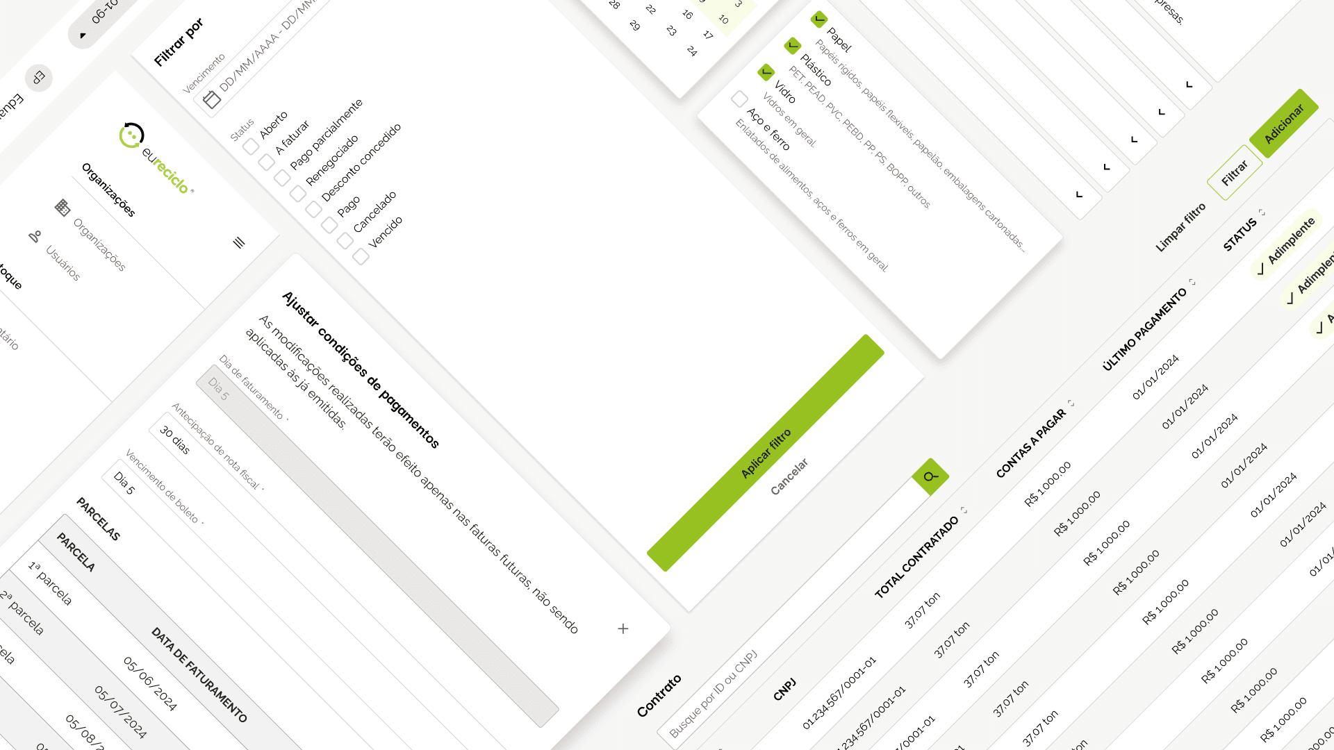Projected to provide transparent and meaningful data about recycling credits, Costumer Area is a secure online portal developed for eureciclo's clients to visualize their recycling credits, track environmental impact, download recycling credit certificates, and access detailed reports, contracts, bills and other relevant documents. The platform offers an intuitive interface where users can easily monitor their transactions, download certificates, and stay informed about their contributions to sustainability. Designed with user experience in mind, the Costumer Area provides seamless navigation and robust security features to ensure that clients' data is protected. By empowering businesses with transparent access to their recycling activities, the Costumer Area reinforces eureciclo's commitment to environmental responsibility and customer satisfaction.
