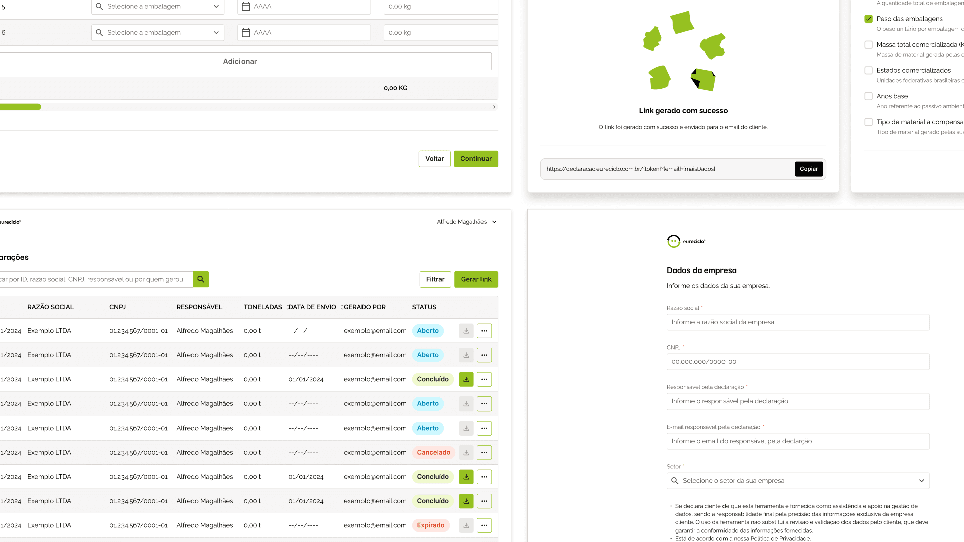 One of the most complex problems I had to solve at eureciclo was the required process of mass declaration of products by our clients, which was a long and error-prone task for eureciclo's sales team and costumers due to the large volume of data involved. To address this challenge, I led and designed a streamlined mass declaration system that allowed clients to efficiently upload and manage their product data in bulk. The new system featured an intuitive interface for data entry, validation checks to minimize errors, and automated processes to handle large datasets seamlessly. By simplifying the mass declaration.